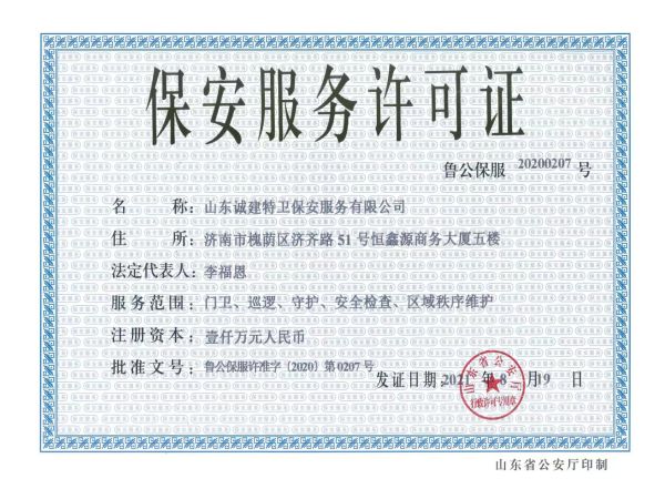您当前位置:山东诚建特卫保安服务有限公司【网站】 >> 企业资质 >> 频道首页